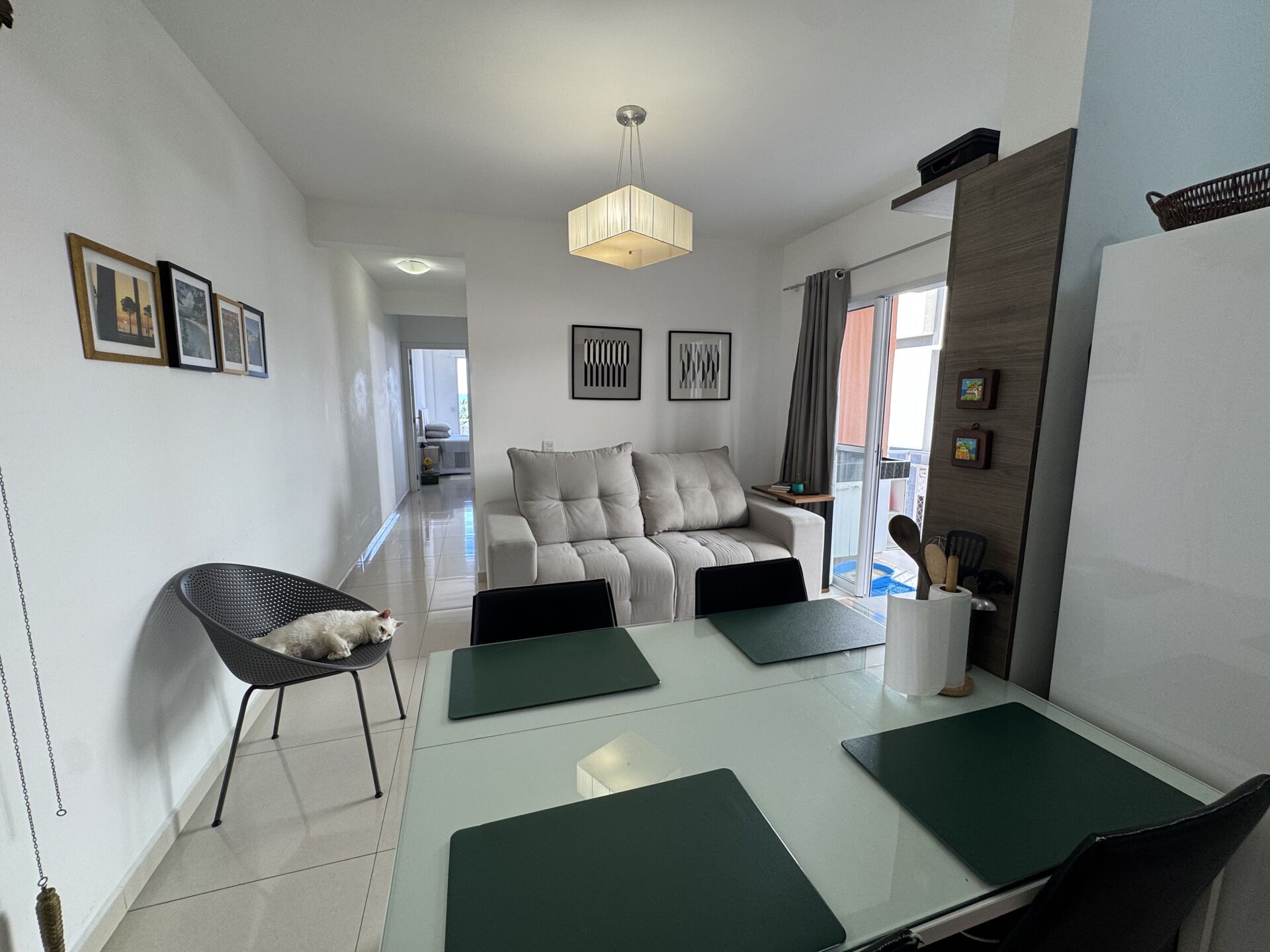 Apartamento a venda no Santinho em Florianópolis, excelente localização, rua pavimentada, ótima vizinhança, prédio com ótimo acabamento, apartamento com sacada e churrasqueira privativa, 2 dormitórios sendo 1 suíte, sala de estar e jantar, cozinha, área de serviço, condomínio com valor acessível, mobiliado, 58m² de área útil o apartamento e mais 10m² da vaga de garagem privativa, APENAS 500 METROS DA PRAIA, ótimo para alugar no verão.