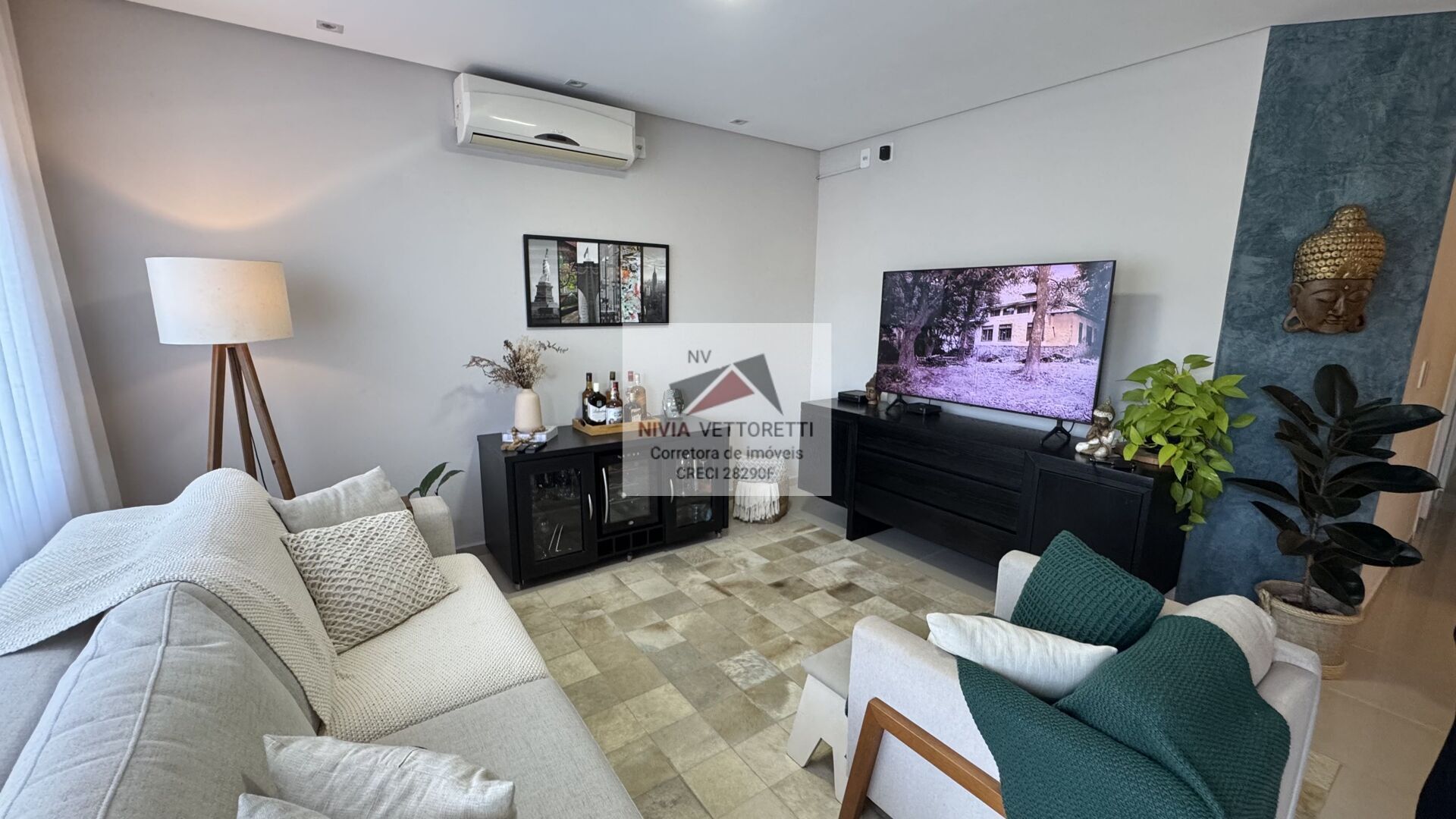 O imóvel conta com 3 dormitórios, sendo 1 suíte, todos com armários planejados e ar-condicionados. São 2 banheiros completos, com box em vidro temperado e acabamento impecável.