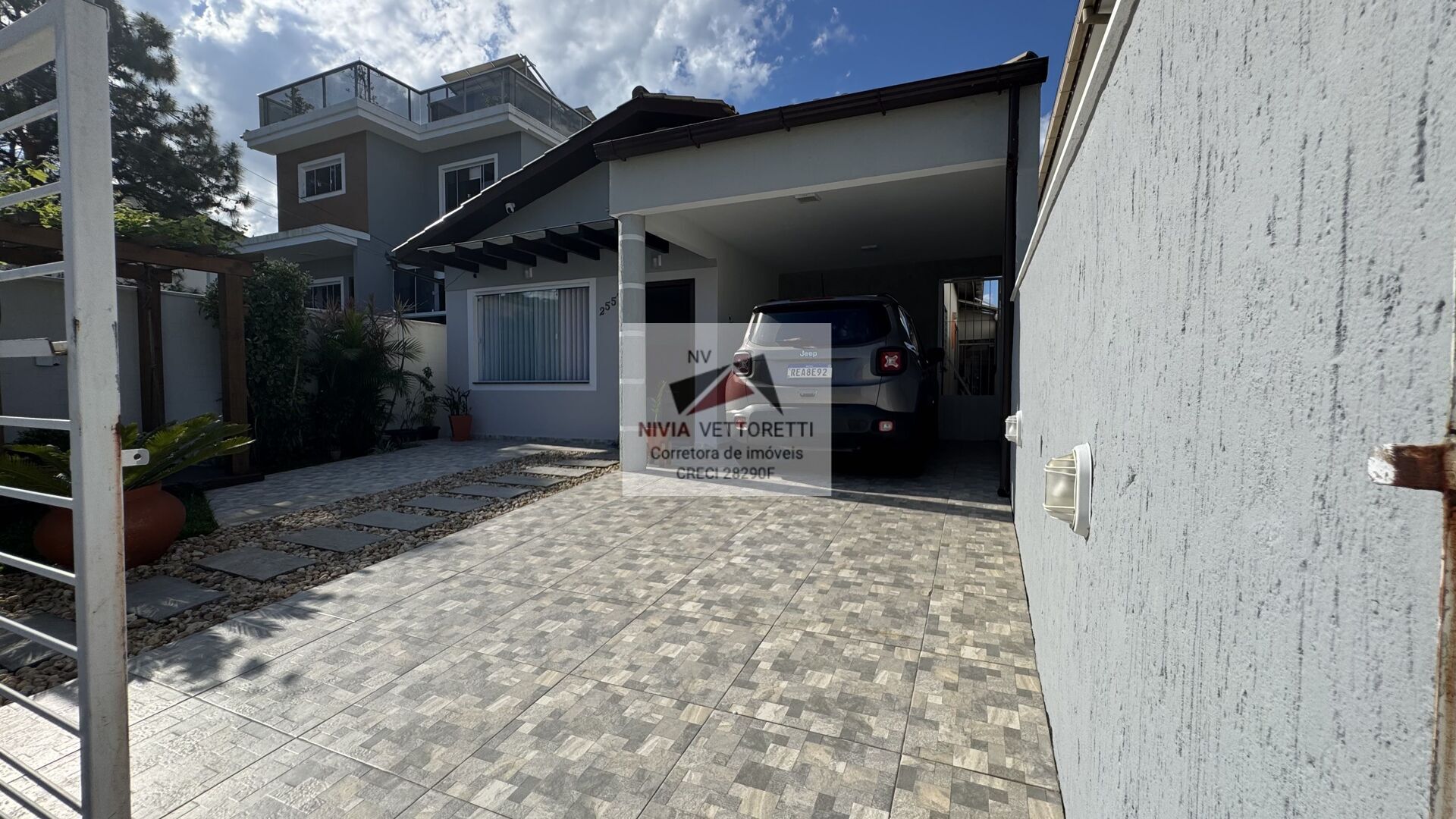 🚗 Garagem coberta para 1 carro, mais 2 vagas descobertas, portão eletrônico, sistema automatizado de iluminação e muro alto, garantindo privacidade e segurança.